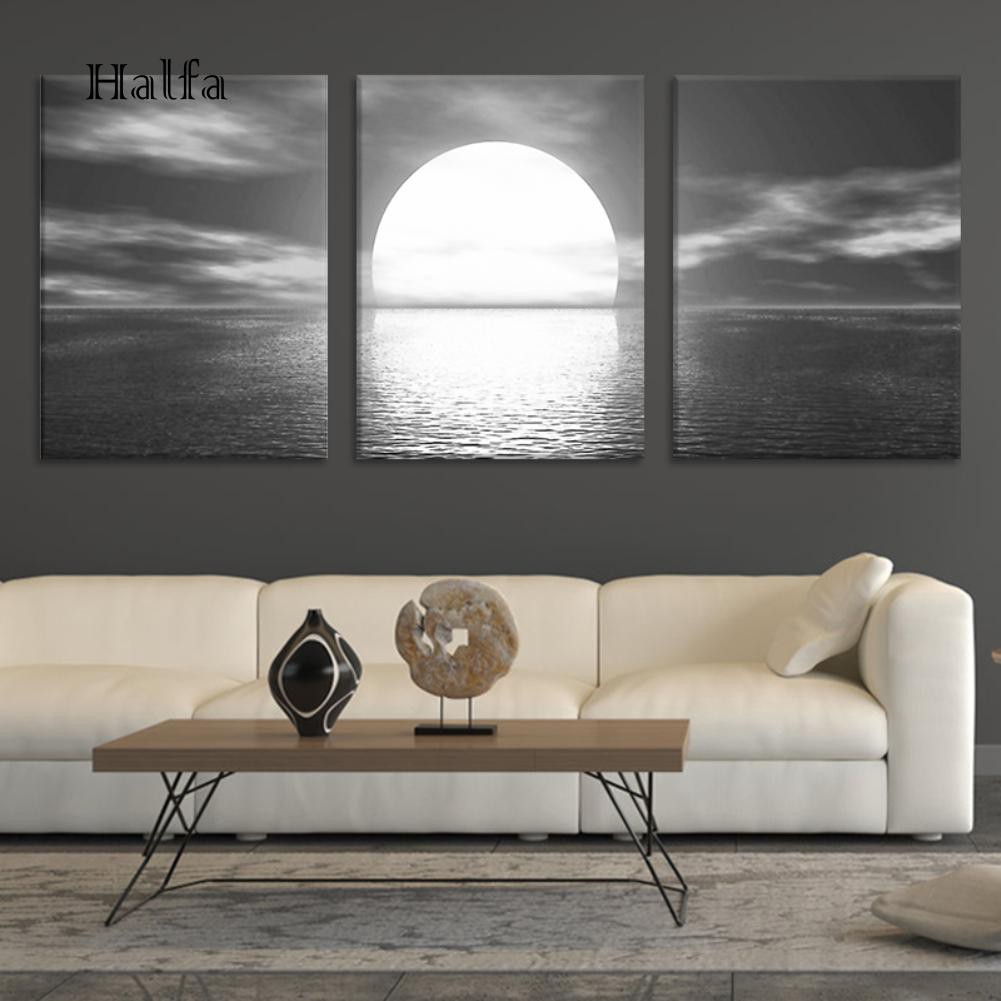 Hl 3 Pieces Modern Sunrise At Sea Wall Paintings No Frame Poster